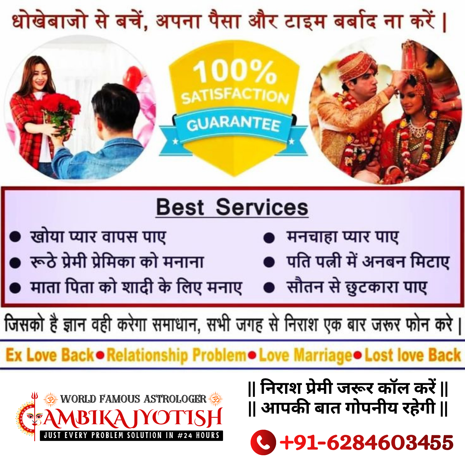 अब और दुःख नहीं! 🌙 अगर आप लव मैरिज, लव प्रॉब्लम, ग्रह कलेश, पति-पत्नी में अनबन, शादी में रुकावट, या सौतन व दुश्मन से छुटकारा जैसी किसी भी समस्या से परेशान हैं, तो अब समाधान आपके घर बैठे मिलेगा। ✨ प्रसिद्ध ज्योतिषाचार्य Suprasiddh Ambika Jyotish से संपर्क करें — जो अपनी सटीक भविष्यवाणी और प्रभावी उपायों के लिए जाने जाते हैं।